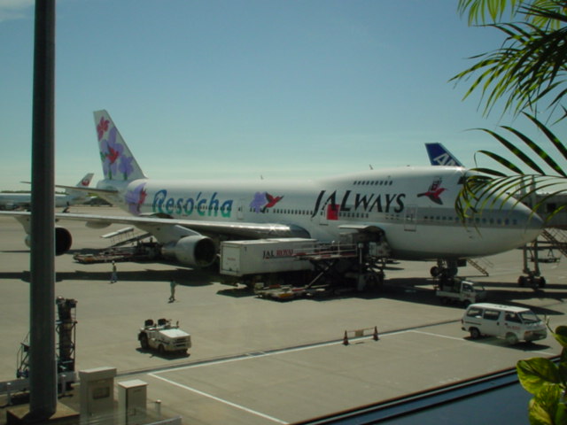 私の乗るはずだった飛行機です。エンジントラブルで結局4時間待ち。成田を出たのは3時過ぎでした。 この飛行機は南の島へ(どこだかはわかりませんが・・)
