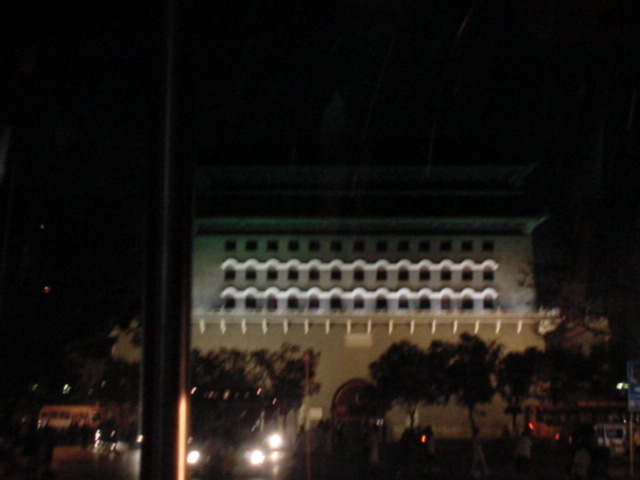 バスの中から、前門を撮影。きれいにライトアップされています。