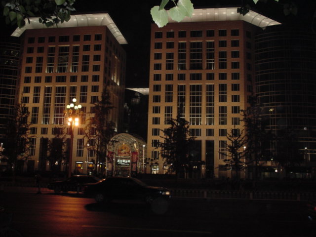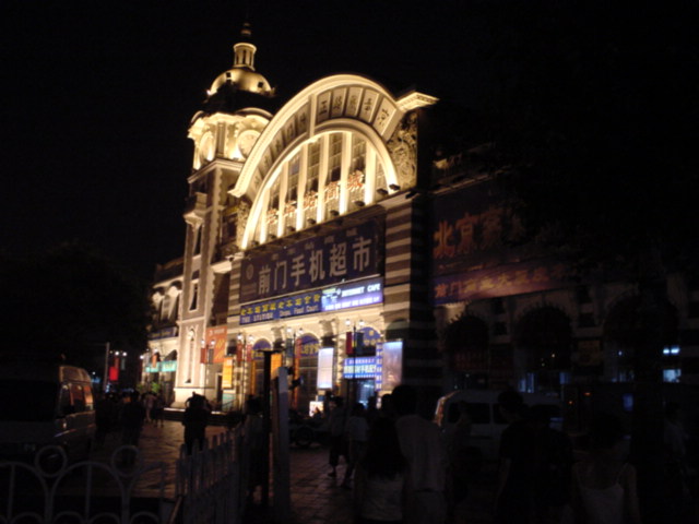 旧北京駅(現在前門の南東にあります)。「前門携帯スーパー」という看板が・・・中国でも携帯電話が流行っています。 東京音頭の着メロもありました。 王府井の「東方新広場」。確か、去年完成したビルだったと思います。本当に大きいビルです。 天安門です。全然ライトアップされていなくて、見えないと思いますが・・・・