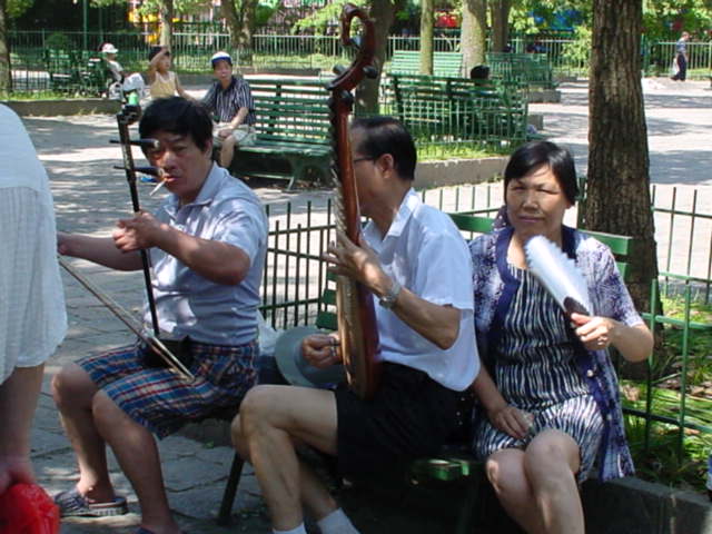 朝の魯迅公園です。中国の楽器を弾いている人もいれば・・・