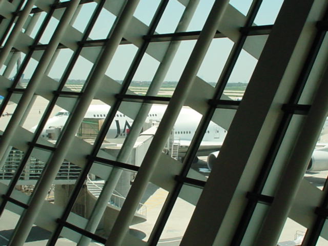 浦東国際空港にて。見える飛行機が私の乗る飛行機です。