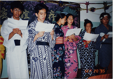 お別れパーティーで日本の歌を歌う。