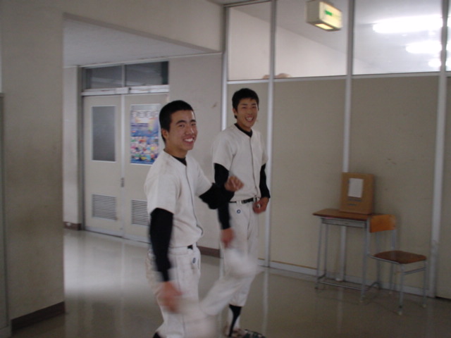 国語科準備室の前で。野球部の生徒達。目指せ!甲子園!