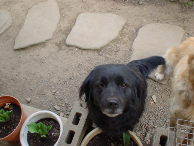 エルマ。バイスの娘です。父親が茶色い犬だったのですが、見事に真っ黒な犬になってしまいました。かなりの臆病者です。