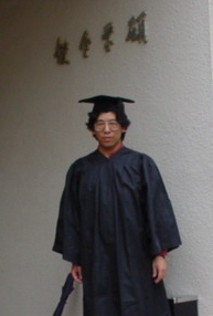 桜美林大学構内碩学会館入り口にて2002.3.5